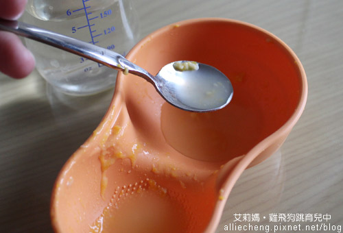 也會用湯匙餵屁寶喝水,讓他慢慢嘗試學習"吸"的動作