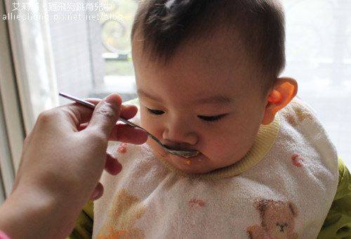 有一天,在餵屁寶吃副食品,邊餵邊把粥吹涼