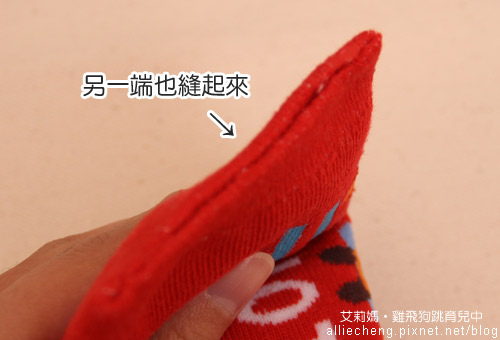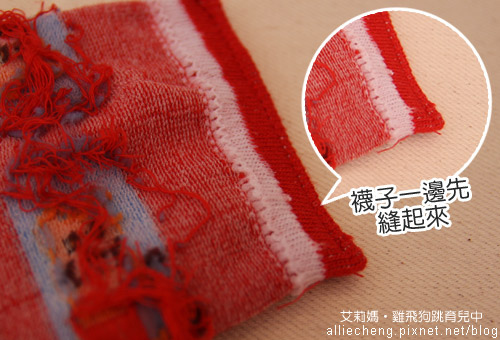 翻到背面,將襪套其中一端先縫起來