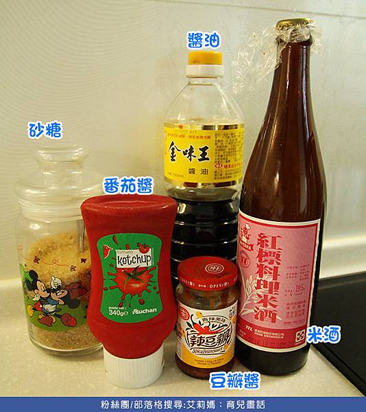 紅砂糖、醬油、米酒、番茄醬、豆瓣醬
