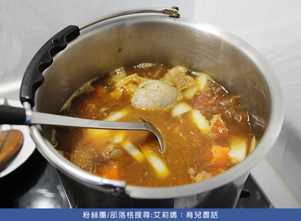 所以我都等煮到滾後,放進悶燒鍋裡面讓牛肉悶個半天