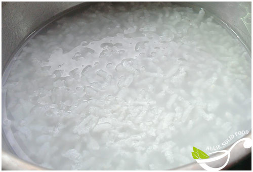 稀粥煮好後,用湯勺舀取上面的湯水(不含米粒),這就是白米水囉!!