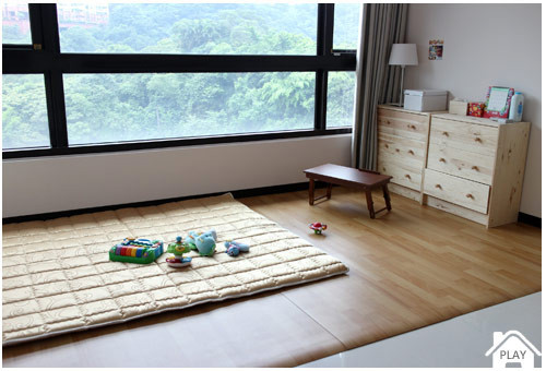 原本是只用房間的一半,剛好屁寶要換新的兒童床組,原本想要鋪木地板,但是總覺得基隆不適合